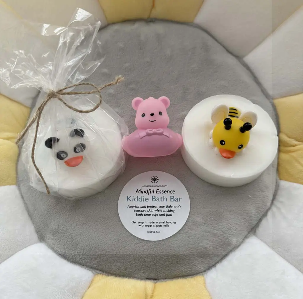 Our Baby Bath Soap is 100% Goat’s Milk Base/Human Breast Milk. Gentle enough for a newborn and tested on my own grandchild.